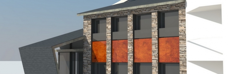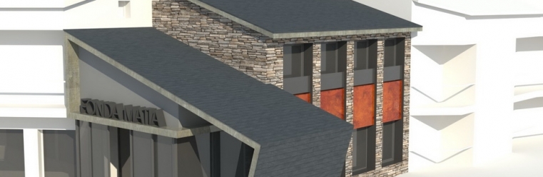 La zona a rehabilitar-ampliar, actualmente está distribuida en un cuerpo central de planta baja destinado a "hall-recepción" y zona de cocina y un pequeño semisótano destinado a sala de calderas. El proyecto rehabilitará la planta baja y dejando los mismos usos. Se crea un hall-recepción más diáfano que el actual y la zona de la cocina también plantea una sala más diáfana que la actual. Esto se debe a que el edificio inicial de la Fonda Matia era el actual cuerpo central al que se han ido anexando cuerpos para las diversas ampliaciones a lo largo de los años. La nueva distribución plantea un nuevo inicio para este cuerpo central que es resuelve la macla y cambio de orientaciones de las dos alas extremas existentes. La zona del hall recepción se complementa con una zona de barra de bar y una previsión de escalera de caracol de comunicación PB-P1, para uso exclusivo del servicio de la Fonda, y la zona de recepción. Estas tres zonas se plantean de manera que a las horas en que no hay servicio de bar ni de recepción se "cierran" los diversos espacios para conseguir un funcionamiento autónomo del establecimiento. Como elemento singular de la actuación se plantea una nueva cubierta a la entrada del edificio que además integra el rótulo publicitario del mismo.