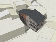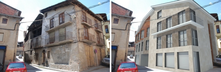 Se trata de un solar en suelo urbano consolidado, en testero, con un edificio existente de planta baja más una plantas piso y bajo-cubierta en la parte sur y planta baja más dos plantas piso y planta bajo-cubierta en la parte norte. El edificio contiene una vivienda y un antiguo horno de pan. Actualmente el edificio está en desuso y deshabitado. Se proyecta un edificio que afronta en dos viales y a una prolongación de vial que sirve de entrada al patio de una finca vecina que comparte pared medianera con el solar a edificar. El nuevo edificio consta de planta baja más dos plantas piso y planta bajo cubierta